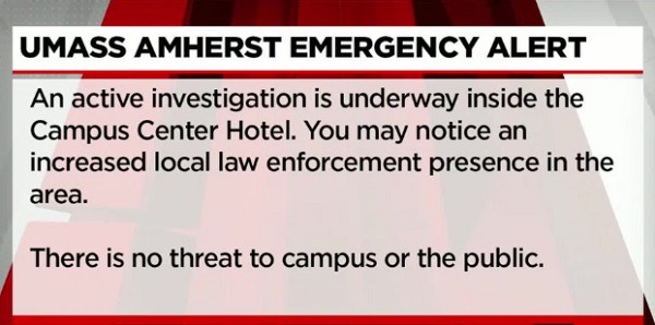 A homicide investigation is underway at the University of Massachusetts Amherst following the discovery of a woman’s body inside the Campus Center Hotel on Wednesday night, April 22, 2026. Authorities responded to the scene after receiving reports of a disturbance or emergency, where they found the victim deceased.